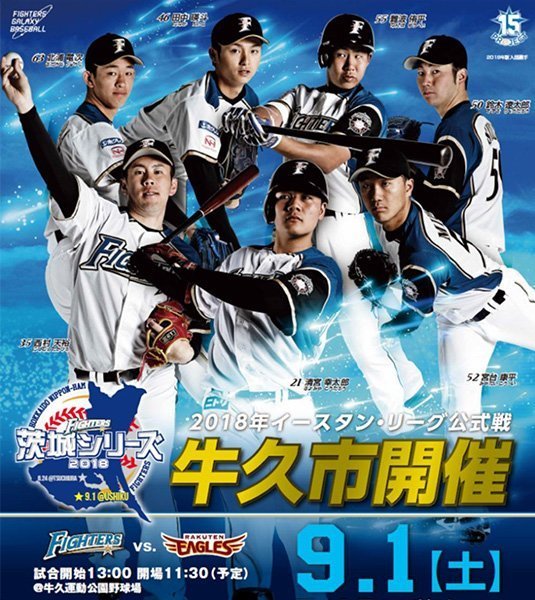 北海道日本ハムファイターズでは、9月1日(土)に牛久市で開催するイースタン・リーグ公式戦≪茨城シリーズ2018≫のチケットを、7月15日(日)からファイターズオフィシャルショップや、球団公式サイトなどで販売いたします。この試合は「茨城県西南地域でのスポーツを通じたエリアマネジメントプロジェクト」の一環として開催するもので、茨城県で北海道日本ハムファイターズの主催試合は2年目となります。