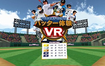 実際の選手と同じようにバッターとして球場に立ち、バッティングすることができるVR(バーチャルリアリティー)バッティング体験コーナーを設置いたします。選手と同じ目線でバッターボックスに立ち、バッティングが楽しめます。あなたのバッティングはプロに通用するか!?挑戦お待ちしています!