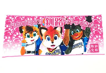 地方試合開催を記念し、限定のフェイスタオル、記念ボール、ミニボールストラップなどを発売いたします。また、ユニフォームや応援具などのファイターズグッズも取り扱いいたします。