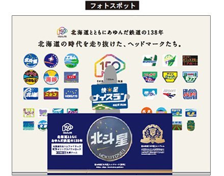 北海道の鉄道に関するなつかしのアイテム(駅看板。駅員道具・JR制服等)や販売中の「ご当地入場券」の全種類を展示。また展示内容と連動したフォトスポットを設置し、SNSでアップしてくれた方に先着で300名にグッズをプレゼント!