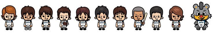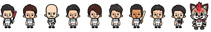 PansonWorksの可愛らしいイラストで描かれた選手が話題を呼び、数々のグッズが発売された大人気のコラボアイテムです。今回は9人の選手(田中賢、レアード、中田、西川、近藤、中島卓、清宮、鶴岡、大田泰)がお茶目なキャラクターとなって登場します。