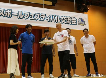 続いて岩本勉さん、稲田直人さん、森本稀哲さんが登場し、予想通りの大爆笑トークを繰り広げました。交流会の最後は、何とこの日が誕生日という稲葉SCOの誕生祝いというサプライズ、交流会に参加した545名の皆さんのハッピーバースデーソングで、賑やかな交流会が終了しました。