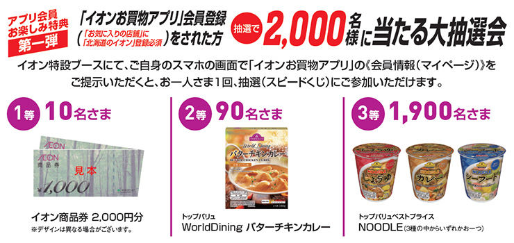 「イオンお買物アプリ」をダウンロード&会員登録をされた方、抽選で2,000名さまに当たる大抽選会!