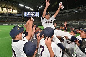 北海道内の中学硬式野球チームNo1を決める「2018 FIGHTERS BASEBALL CHAMPIONSHIP U-15」は8月17日(金)、札幌ドームで決勝戦が行われ、旭川大雪ボーイズが札幌大谷シニアに5対4でサヨナラ勝ちを収め、初優勝を果たしました。この大会は2016年に設立され、リトルシニア、ボーイズリーグ、ポニーリーグが団体の垣根を越えて雌雄を決するもので、3回目の大会で初めてボーイズリーグ代表の旭川大雪ボーイズが参加47チームの頂点に立ちました。