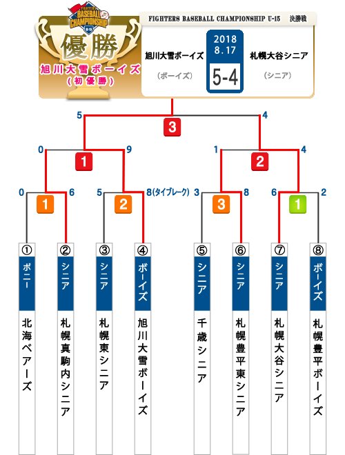 | 札幌大谷シニア | 0 | 0 | 0 | 0 | 1 | 0 | 3 | 4 | 6 | 1 | |