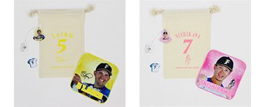 | 備考 | 田中賢選手、中田選手、鶴岡選手は前回のPSと同様の商品です PS限定ユニフォーム、ウッドスマホケースはオフィシャルオンラインストアのみでの取り扱いとなります 商品は店舗によって取り扱い状況が異なります 商品は無くなり次第販売終了となります |