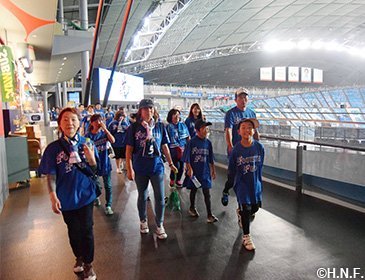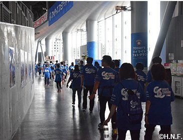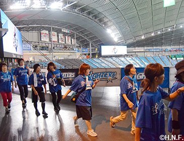 北海道日本ハムファイターズではSC(スポーツ・コミュニティ) 活動の一環として、4年目を迎えた『ファイターズウォーキングクラブ「FOOTSTEP FUND~あしあと基金~」』の2018年第4回活動を、8月25日(土)の東北楽天ゴールデンイーグルス戦(札幌ドーム)の開始前に実施しました。ファイターズOBの稲田直人さんや旭川市出身で長野パラリンピックから4大会連続でパラアイスホッケー日本代表のGKを務めた永瀬充さん、北海道内外からエントリーされたファンの皆様ら124人で約1時間半ウォーキングしました。