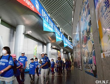 当初の予定では札幌・清田区にある北海道コカ・コーラボトリング札幌工場を訪れる予定でしたが、あいにくの雨模様のため、札幌ドーム内コンコースを周回するコースに変更しました。試合前の練習をしている選手を見下ろしながらのウォーキングとなり、総歩数は1,070,373歩、10歩1円換算で107,038円を北海道オールオリンピアンズへ寄贈し障害者スポーツの用具購入費や普及振興に役立てていただきます。