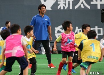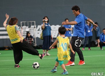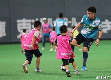 短い時間ながら中身の濃いメニューで、鹿内選手は「楽しそうな表情で取り組んでいただけたのでうれしかったです」と振り返り、山本選手も「また一緒にボールを蹴る機会を持ちましょう」と呼びかけていました。マイクを手に全体をリードした三浦選手は「素晴らしいグラウンドでスポーツをする機会はなかなかなく、北海道には様々なプロチームがあって幸せなこと」と充実した面持ちを浮かべていました。今年はバレーボール、バスケットボールと様々な競技を一緒に体験している稲葉SCOは「親子で楽しむのがとても大事なことで、今回もスポーツを始めるきっかけになってくれたら」と話していました。