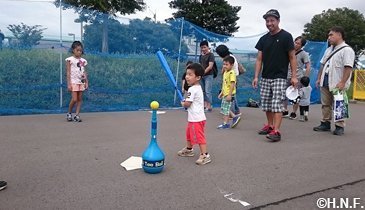 「普段はボールを打つことはなかなか出来ないので、子どもが楽しそうにボールを打ってる姿は新鮮でした」と参加したお母さんも子どもと一緒にボール遊びを楽しみながら、子どもの成長を感じる事の出来た時間に満足顔でした。