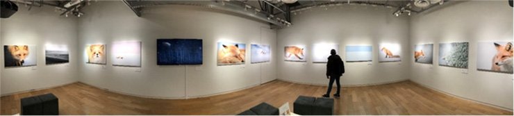 井上さんが北海道の各地で撮影した写真の数々をテーマごとに分け、1Fコンコースに展示いたします。三塁側では北海道と共に生きる動物たちの「力強い息吹」「愛くるしい表情」「躍動感」が溢れる写真を、一塁側では北海道という大地の「豊かさ」「雄大さ」「厳しさ」など、その一瞬を切り取った美しい風景の写真を展示いたします。