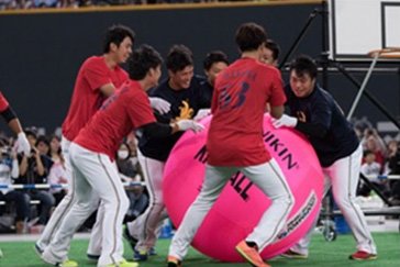 昨年のファンフェスティバルでファイターズの選手たちがチャレンジした競技でもあり、世代問わず親子でできるスポーツとしても注目を集めている「キンボール」の体験会を試合終了後のグラウンドで実施。「札幌キンボールスポーツ協会」によるデモゲーム後に、レクチャーを交えながらキンボールに触れる体験会を予定しております。ぜひ、この機会にチャレンジしてみてください。