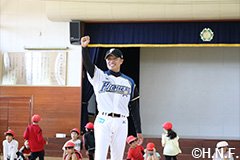 今回の体育授業は北広島市と北海道日本ハムファイターズが締結するパートナー協定の一環として行われた連携事業で、市内小学校の体育授業を通じ、体力及び運動能力の向上を図ることを目的としています。ファイターズのアカデミーコーチが小学校の体育授業で指導するのは初めての試みとなります。