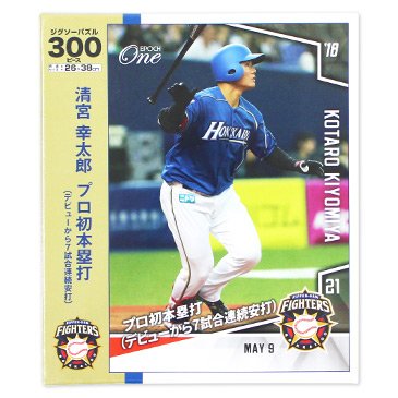記録や記憶に残るシーンを受注生産によりカードにした「EPOCH-ONE」から、各月で最も印象的なできごとを「EPOCH ONE MIP」と称し、オリジナルジグソーパズルとして発売いたします。9月20日(木)からは、4月の「中田選手29歳バースデーアーチ」と、5月の「清宮選手のプロ初本塁打」のMIPパズルを販売いたします。