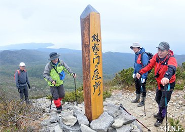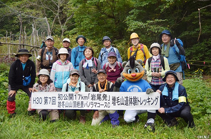 かつてあった電柱や電線も残り、明治期に設置された一等水準点を見つけながら山道が使われていた時代に思いをはせました。途中で雄冬山、浜益御殿という二つの山の頂上にも立ち、日本海や暑寒別岳などの周囲の山々を一望すると参加した人たちから「絶景を見たら疲れも忘れられます」と声が上がっていました。B☆Bは幌側で待ち9時間半のトレッキングを終えた人を出迎え、写真撮影などに応じて労をねぎらいました。