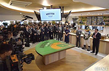 セレモニーで新千歳空港ターミナルビルディング株式会社の阿部直志代表取締役社長から「ファイターズとタッグを組んで北海道を訪れる国内外のお客様へ179市町村の魅力を発信していき、(地震の影響を受けた)北海道が活気を取り戻す速度を加速させるスペースとして期待しています」とご挨拶をいただきました。北海道日本ハムファイターズの竹田憲宗代表取締役社長も「北海道でしかできない旬の食材を提供し、プロ野球球団にしかできない様々な取り組みを形にしていく地域との共生の場として、ボールパーク建設までの道をファンの皆様とともに築いていきます」と誓いました。