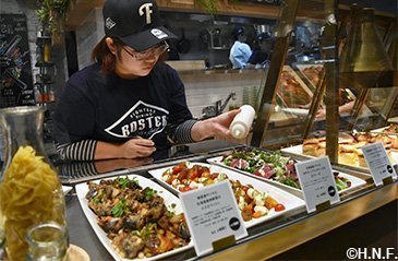 北海道日本ハムファイターズは10月18日(木)、北海道の玄関口である新千歳空港国内線ターミナルビル3階に球団直営レストランとしては球界初の空港出店となる「FIGHTERS DINING ROSTER DELI & ROAST」をプレオープンしました。10月19日(金)の本オープンに先立ち、北海道産の食材を生かしたメニューのご試食と店舗の内覧を兼ねて、お取引先や報道関係の皆様ら76人を招待しました。