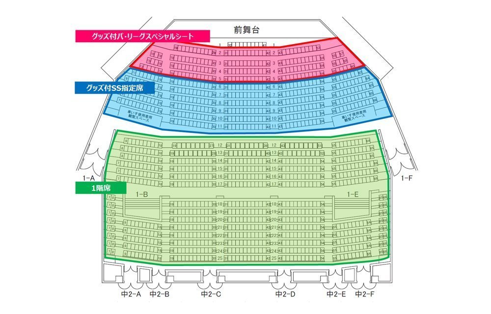 - ※「グッズ付パ・リーグスペシャルシート」以外の席種は公演1週間前より決済方法をクレジットカードのみとさせていただきます