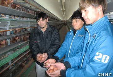 中島卓也選手、上原健太投手ともに初めての比布町訪問となりました。印象的だったのは、新千歳空港内に先日オープンした球団直営カフェレストラン「ROSTER」でも使用する卵を生産する「かっぱの健卵」養鶏場です。約1万3千羽の鶏がおり、中島卓選手は「こんな数の鶏を初めて見た。すごい」と驚いた様子。上原投手も昼に食した卵を手にして、「すごくおいしかった」と話していました。300人超で満員となったトークショーでは、来季の目標本塁打数を聞かれた中島卓選手が「まずは1本。隣の上原は初ヒットが初ホームラン。負けないように頑張ります」と笑わせ、会場を盛り上げました。小学校訪問や小中学生対象の野球教室では子どもたちと親睦を深めました。どこを訪れても熱烈な歓迎ぶりで、2選手にとって充実した1日となりました。