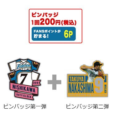 各日来場ポイント一律150Pと、ご来場2,500名様にコラボピンバッジをプレゼント!お受取りには、当日の観戦チケットとファイターズファンクラブ会員証が必要となります。