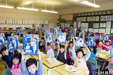 2018年「北海道179市町村応援大使」が就任した18市町村のうち、石狩市、八雲町、砂川市、栗山町、幌加内町、幌延町、小清水町、音更町、標茶町の9市町で応援大使にまつわる献立を学校給食に提供していただきました。メニューを考案していただくにあたり、事前に選手に対して食にまつわるアンケートを実施。「給食に採り入れてもらいたいご当地グルメ・好きだった献立」「今意識して摂取している食べ物」「苦手を克服した食材」といった質問項目の回答を自治体側に提供し、昨年11月から12月にかけてそれぞれの市町で21,849名の児童・生徒の皆さんに味わっていただきました。