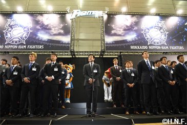 北海道日本ハムファイターズの栗山英樹監督をはじめ、コーチングスタッフと選手の計81人が1月19日(土)、千葉県内で開催されたニッポンハムグループ展示会に参加しました。