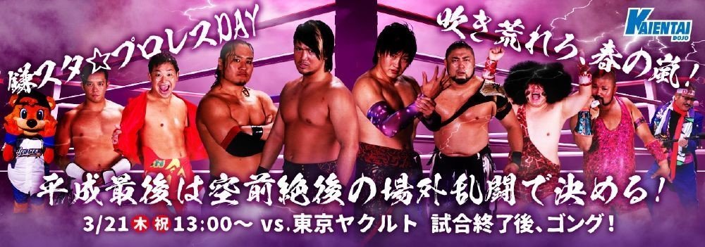 人気イベントのひとつである異種競技ダブルヘッダー「鎌スタ☆プロレスDAY」を開幕シリーズ3日目となる21日(木・祝)に球場正面広場特設リングで開催します。