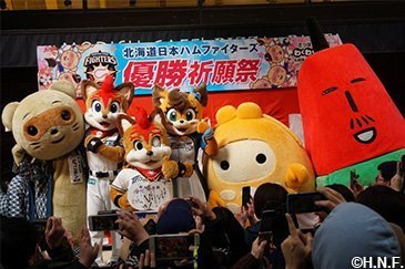 2019年シーズン開幕を間近に控えた3月21日(木・祝)、札幌狸小路商店街・さっぽろわくわく応援団(札幌市商店街振興組合連合会)の主催で「北海道日本ハムファイターズ優勝祈願祭」が今年も開催されます。祈願祭にはフレップ、ポリーも駆け付け、賑やかに会場を盛り上げます。また、毎年恒例の「フレップだるま」も登場し、フレップ自ら墨入れをして、ファンの皆さんと一緒に日本一奪還祈願を行います。観覧は無料、どなたでもご覧いただけます。