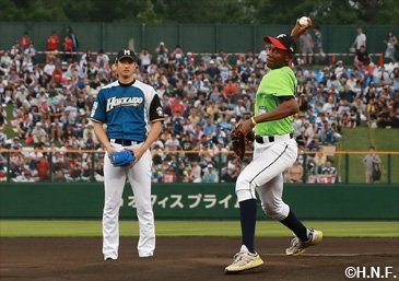 北海道日本ハムファイターズは2013年から選手会が中心になってブルキナファソへ野球用具を贈る活動を続けており、2016年にはブルキナファソの選手を含む「西アフリカ選抜」と「ファイターズOBレジェンズ」が室蘭市で試合を行うなど交流を重ねてきました。3月に3カ国で争われた西アフリカ予選を1位で通過しましたが、アフリカ大陸代表決定戦に出場するための渡航滞在費が国の支援だけでは足らず、費用を工面するため出合さんがチームに再合流する直前に募金活動が行われることになりました。