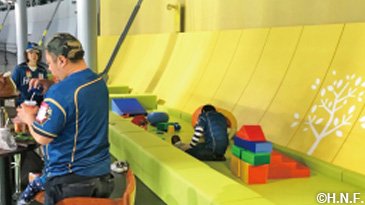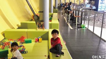 3Fレフト側コンコース「ファイターズファミリーフィールド」はお子様が楽しめるたくさんの遊具を設置したスペースです。また、ご家族も試合観戦を快適にお楽しみいただけるよう、テーブル・ハイチェアを設置いたしました。ご家族そろって楽しい時間を「ファイターズファミリーフィールド」でお過ごしください!