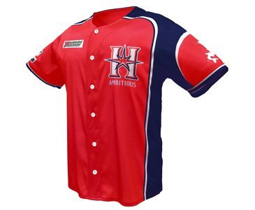 一昨年からのAMBITIOUSユニフォームのコンセプトを引き継ぎ、濃紺・白・赤の配色を基調にデザインしました。トリコロールはフランス語で三色の意味。濃紺は北の空・海、白は光輝と風雪、そして今年のメインカラー「赤」は、道民の不屈のエネルギーを表現しています。胸に北海道の頭文字HとAMBITIOUS、左袖に北海道地図を描き、北海道民と共に大志を抱いてシリーズ期間を戦います。