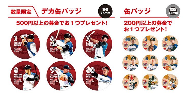 北海道共同募金会では、札幌ドームにて赤い羽根共同募金PR活動を実施いたします。一定額以上の募金にご協力頂いた方にお礼として、オリジナルコラボグッズを進呈いたします。