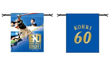 | 価格 | ・ダイジェストTシャツ S/M/L/XL 各2,900円(税別) ・ダイジェストトート 2,000円(税別) ・ダイジェストタオル 1,900円(税別) ・ダイジェスト巾着 790円(税別) ・ダイジェストアクリルキーホルダー 500円(税別) ・郡選手初ヒット記念ボール 2,000円(税別) |