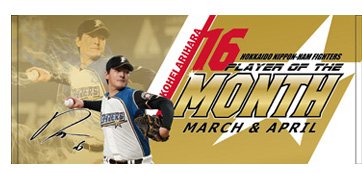 北海道日本ハムファイターズの有原航平投手が大樹生命月間MVP賞(パ・リーグ3、4月度)を受賞したことを記念して、本日5月15日(水)よりオフィシャルオンラインストアで記念グッズの受注予約を開始いたします。受注期間は5月22日(水)12:00までとなりますので、有原投手の功績を讃えてぜひこの機会にお申し込みください。