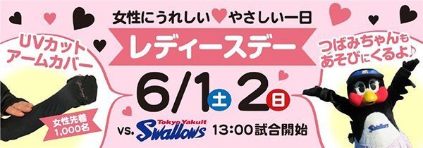 6月2日(日)は、東京ヤクルトスワローズのマスコット「つばみちゃん」が鎌スタへ初来場します。先日は戸田へ遊びに行ったC☆B(愛称:カビー)との交流もどうぞお楽しみに!