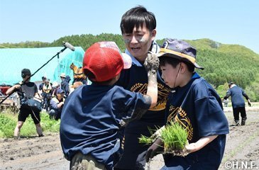 今後は5月29日(水)に上厚真小学校の児童が残りの区画の田植えを行うほか、7月には参加者が厚真町を再び訪れる体験型イベントも実施していく予定です。北海道日本ハムファイターズは農業体験を楽しみ、地域の人々との交流を図る「グリーンツーリズム」の要素を取り入れながら、復興をアシストしてまいります。