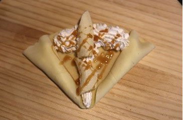 もちもち食感のクレープの皮に、たっぷりクリームとフルーツソースをトッピング!