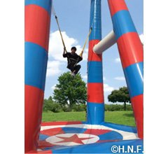 | 空気で浮いたボールを狙ってバットを振ってね! |