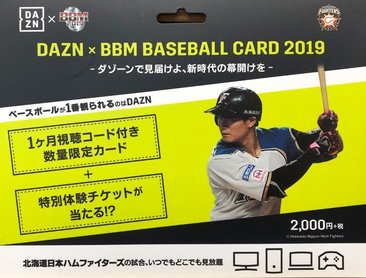 北海道日本ハムファイターズでは6月3日(月)より、球団オフィシャルオンラインストアとオフィシャルショップ「ON-DECK」「CLUBHOUSE」にて、DAZN×BBM BASEBALL CARD(1ヶ月視聴カード・6ヶ月視聴カード2種)を2019年シーズン・数量限定で販売しております。カードデザインはDAZN×西川遥輝選手限定モデル!ぜひ、ご家族やご友人とDAZNでファイターズの熱いプレーをご視聴ください!
