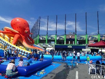 夏の鎌スタもイベントが盛りだくさん!7月15日(月・祝)は「C☆Bバースデー」、20日(土)・21日(日)の「鎌スタ☆祭2019」では球場正面広場に人気イベントのひとつでもある「巨大プール」が登場します。果たして今年はジョーズ、シロクマ、大ダコに続き、どんなウォータースライダーが登場するでしょうか?