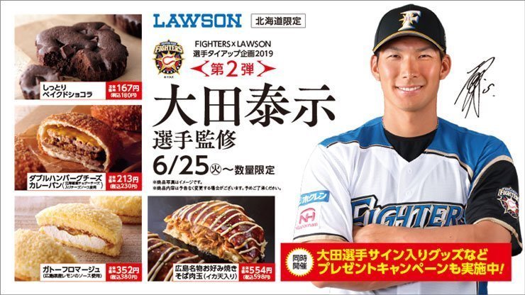 FIGHTERSオフィシャルコンビニエンスストアであるローソンでは、「FIGHTERS選手タイアップ企画 第2弾 大田泰示選手 監修商品」を6月25日(火)から販売いたします。