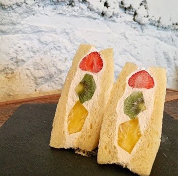 中までフルーツを詰め込んだ当店一番人気のフルーツサンドは本当にフレッシュでジューシー♪