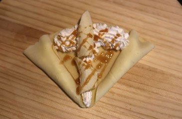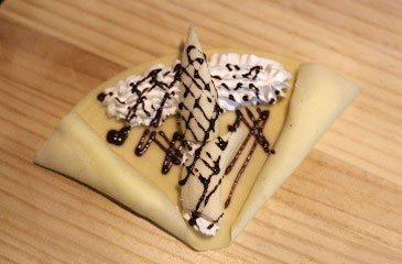 もちもち食感のクレープの皮でたっぷりのクリームとバナナを包みました!