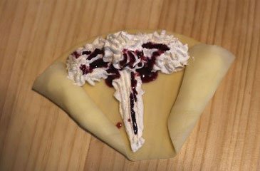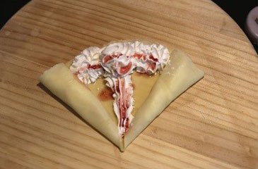 もちもち食感のクレープの皮に、たっぷりクリームとフルーツソースをトッピング!