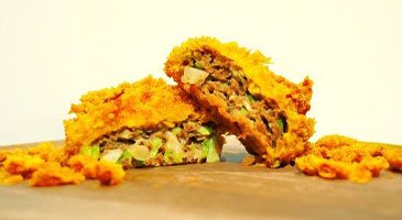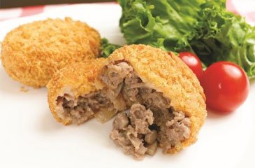 上質な赤身肉が特徴の十勝牛を贅沢に使用した牛メンチです。牛肉を引き立たせるごぼう、玉ねぎも十勝産のものを使用し、和風の上品な味に仕上げました。