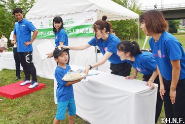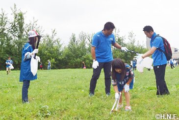ホクレンと北海道日本ハムファイターズは、北海道の「美しい自然」と「キレイな水」を守る環境活動に、共同で取り組んでいます。その活動の1つとして、「頑張れファイターズ!!無洗米ななつぼし」の売上の一部(1kgあたり1円)を活動費用として積み立て、北海道内の河川敷・海岸などを清掃する活動『キープ!クリーンウォーターエコプロジェクト』を毎年実施しています。