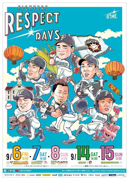北海道日本ハムファイターズでは、9月6日(金)から9月15日(日)まで札幌ドームホームゲーム5試合で開催する《RESPECT DAYS~秋の大感謝祭~》の特別企画として、人気イラストレーターの師岡とおる氏とのコラボレーションが実現いたしました。これまで有名アーティストやイベントのポスター、商品キャンペーンなど様々な分野のデザインを手掛けてきた師岡氏が、ファイターズの選手たちをイメージし、特別に描き下ろしたイラストをメインビジュアルとして採用。ポスターやグッズなどで展開してまいります。
