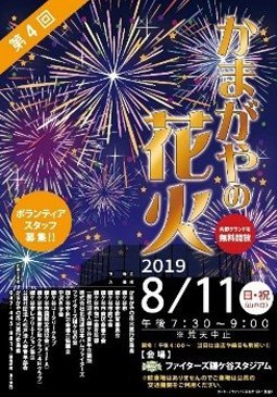 ファイターズ鎌ケ谷スタジアムでは「山の日」となる8月11日(日)に、鎌ケ谷青年会議所をはじめとした市民有志からなる「かまがやの花火実行委員会」が運営する〈かまがやの花火〉を開催します。今年で第4回を迎える同花火大会は、鎌ケ谷市内の小学校9校と中学校5校の児童たちがデザインした3,000発の花火が鎌スタの夜空を彩ります。