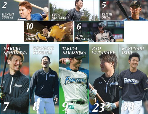 杉谷選手・谷口選手・大田選手・中田選手・西川選手・近藤選手・中島卓選手・清水選手・渡邉選手・石井選手