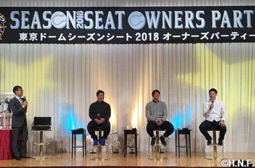北海道日本ハムファイターズでは、シーズンシートオーナーの皆様に一年分の感謝を伝える《シーズンシート2019オーナーズパーティー》を、札幌・東京で開催いたします。ここでしか聞けない選手の裏話が盛りだくさんのトークショーや豪華賞品が当たる抽選会など、シーズンシートオーナーだけが参加できるプレミアムなイベントです。お誘い合わせの上、ファイターズ選手との素敵な時間をお楽しみください!